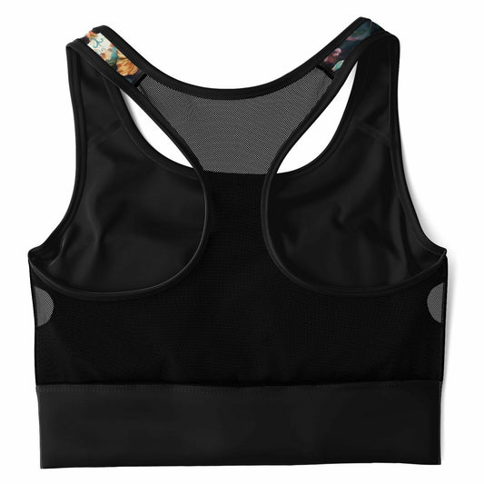 skull & flower Mesh Padded Sports Bra - Whimsigoth